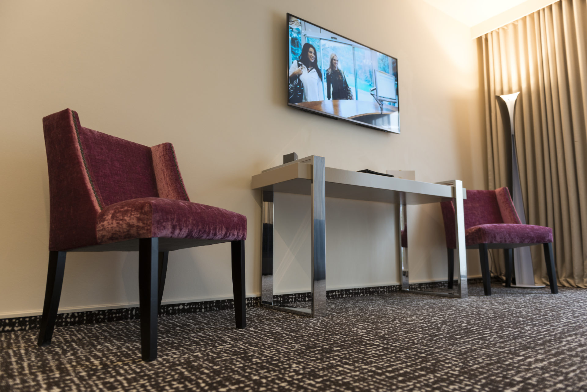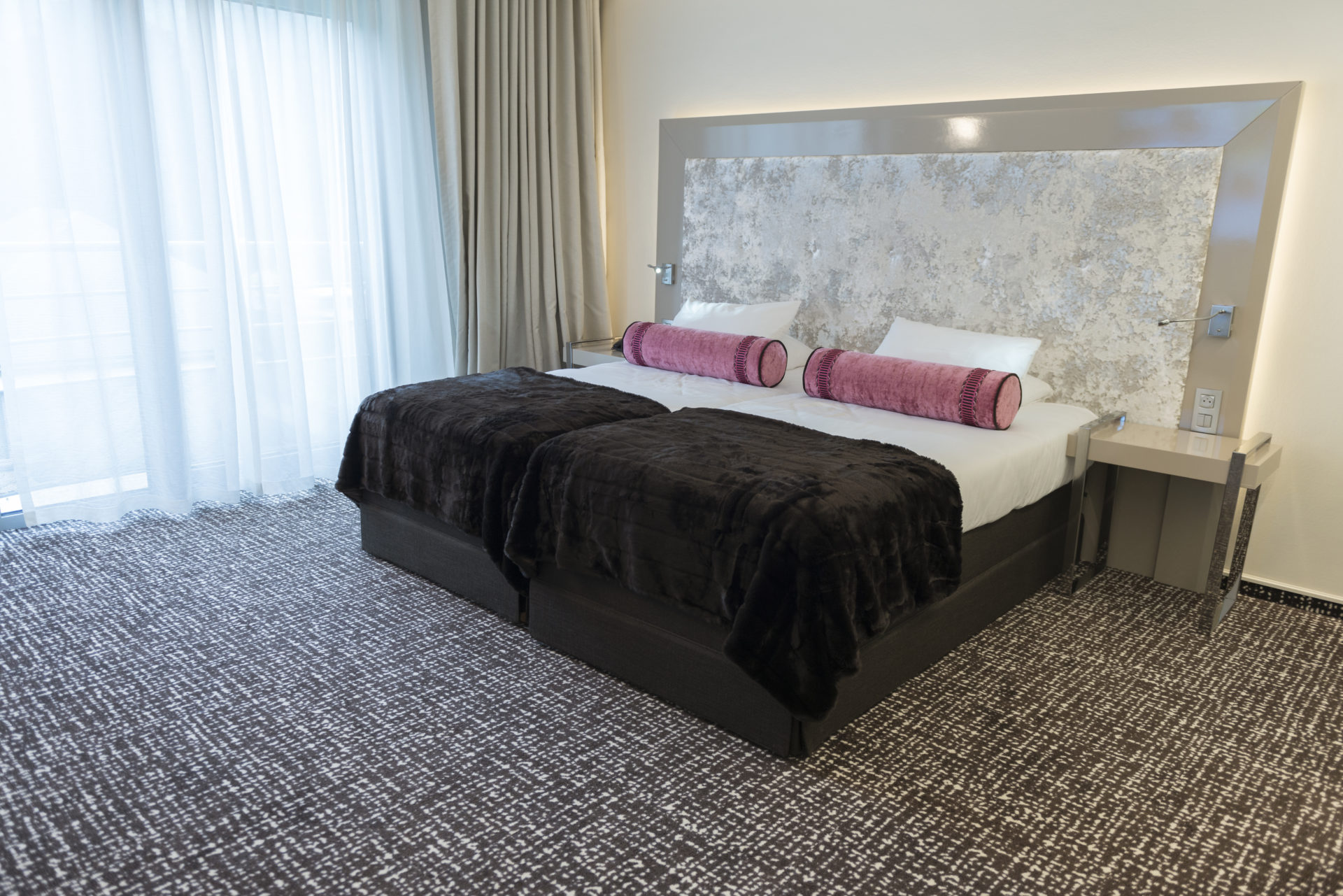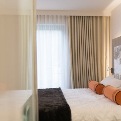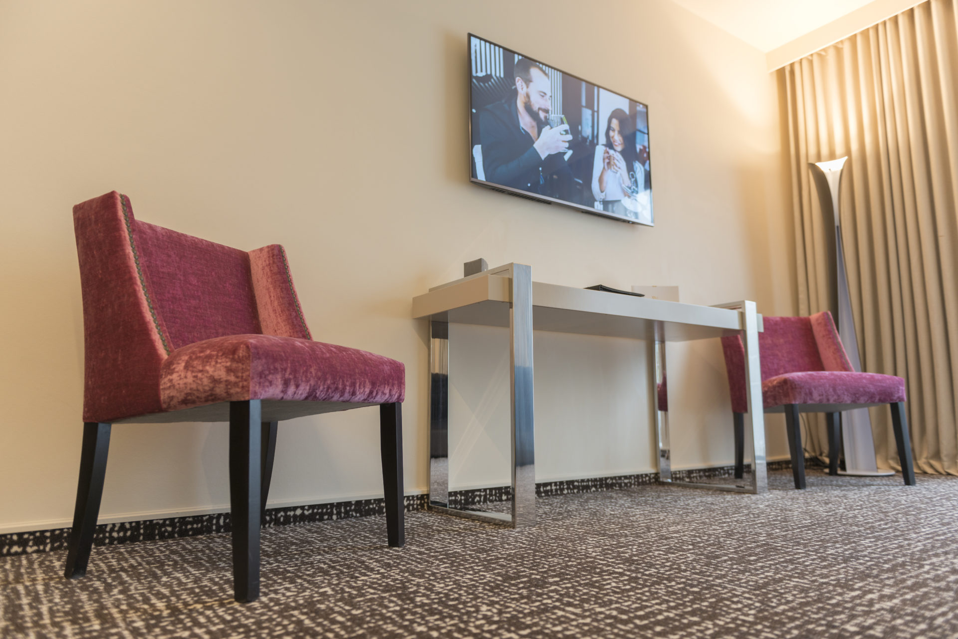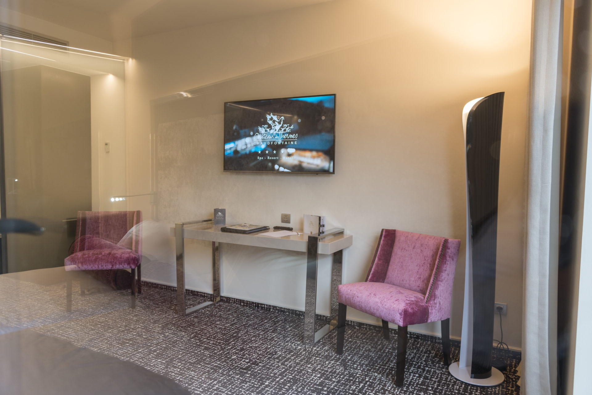 Chambre 2 personnes, douche, bain, téléphone, écran plasma, air climatisé, sèche-cheveux, coffre, minibar, connexion Internet gratuite, toilettes séparées, tisanes.
