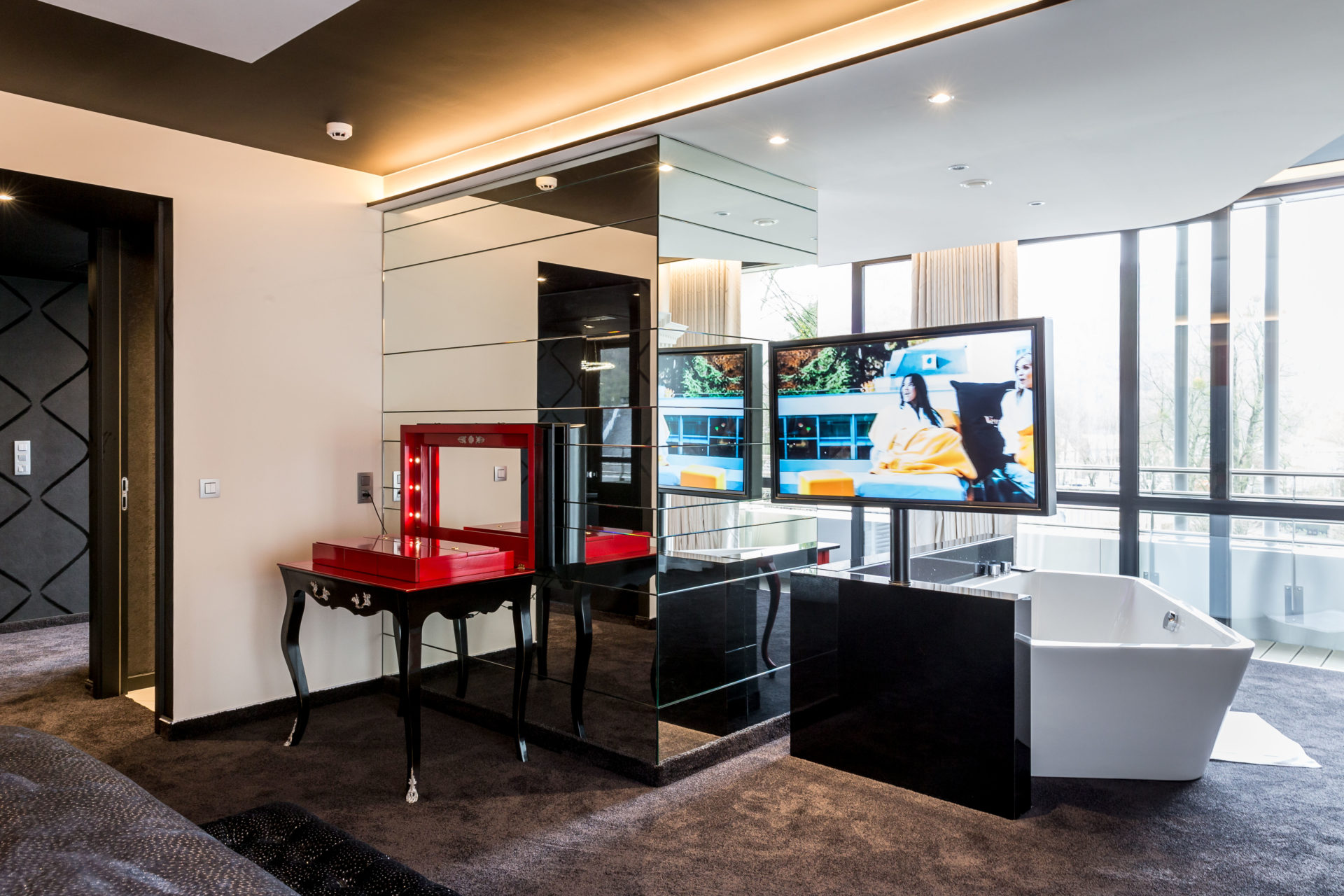 Très grande chambre avec salon (68 m2) // Lit king-size Baignoire duo et grande douche // 2 télévisions // Vue panoramique sur le château // Grande terrasse avec grand lit suspendu